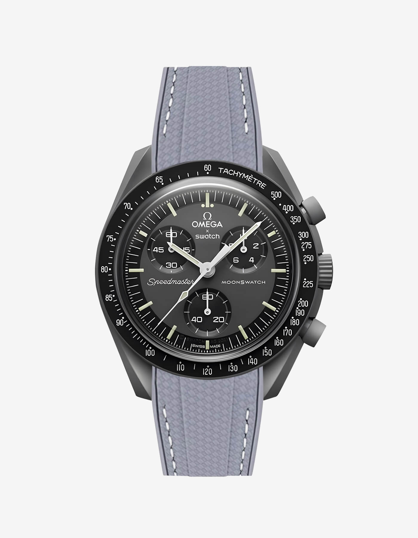 Premium liquid silicone rubber strap for the Omega X Swatch MoonSwatch. Durable and comfortable to wear, it accentuates the colors of the watch. Textured surface with contrasting stitching for a stylish look.