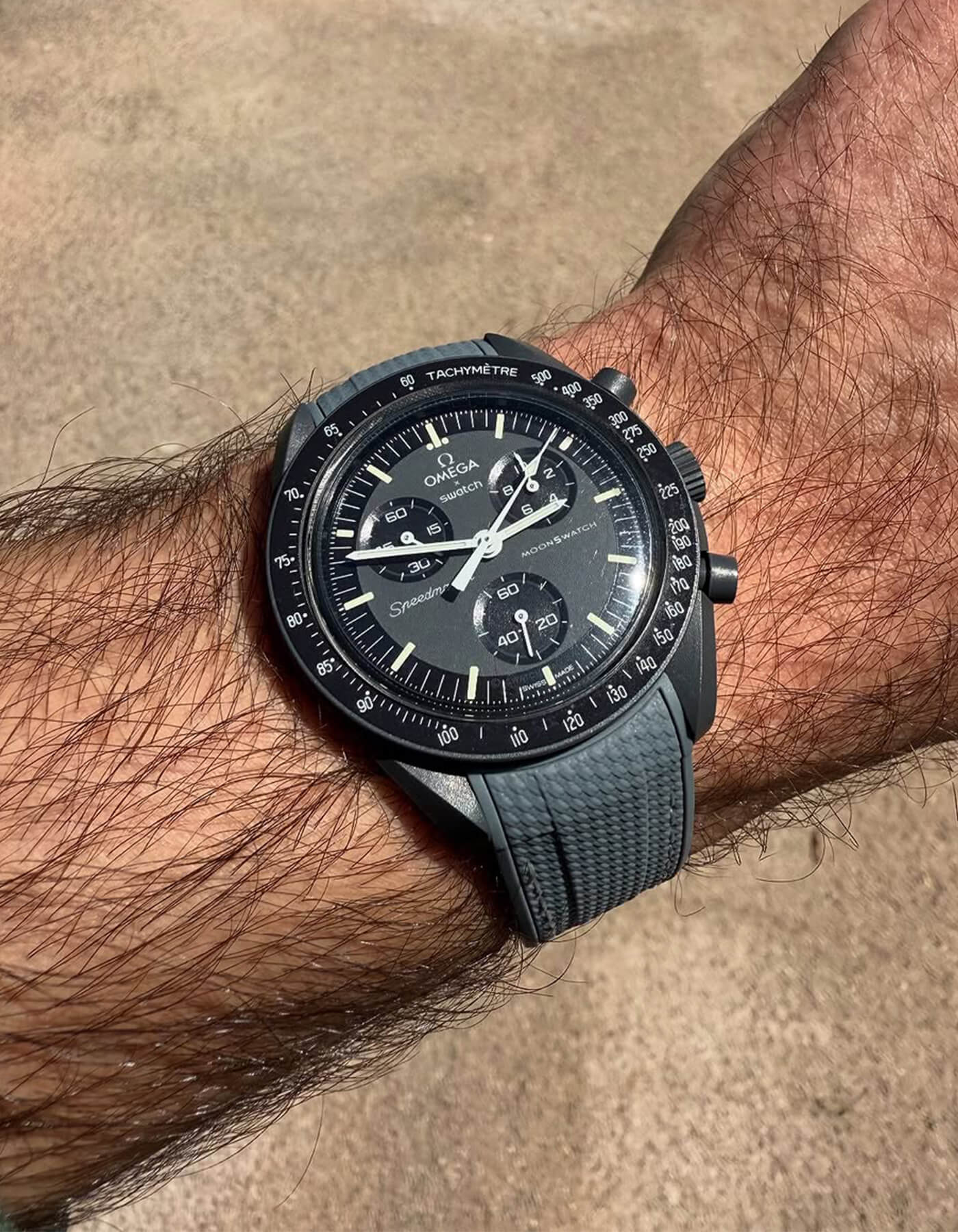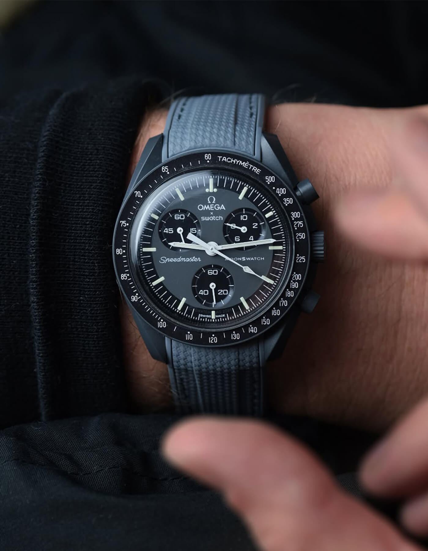 Love your MoonSwatch? So do we. That’s why we created these custom-fit rubber straps. With an ABS insert for a secure fit and a curved interior for breathability, it’s the perfect upgrade.