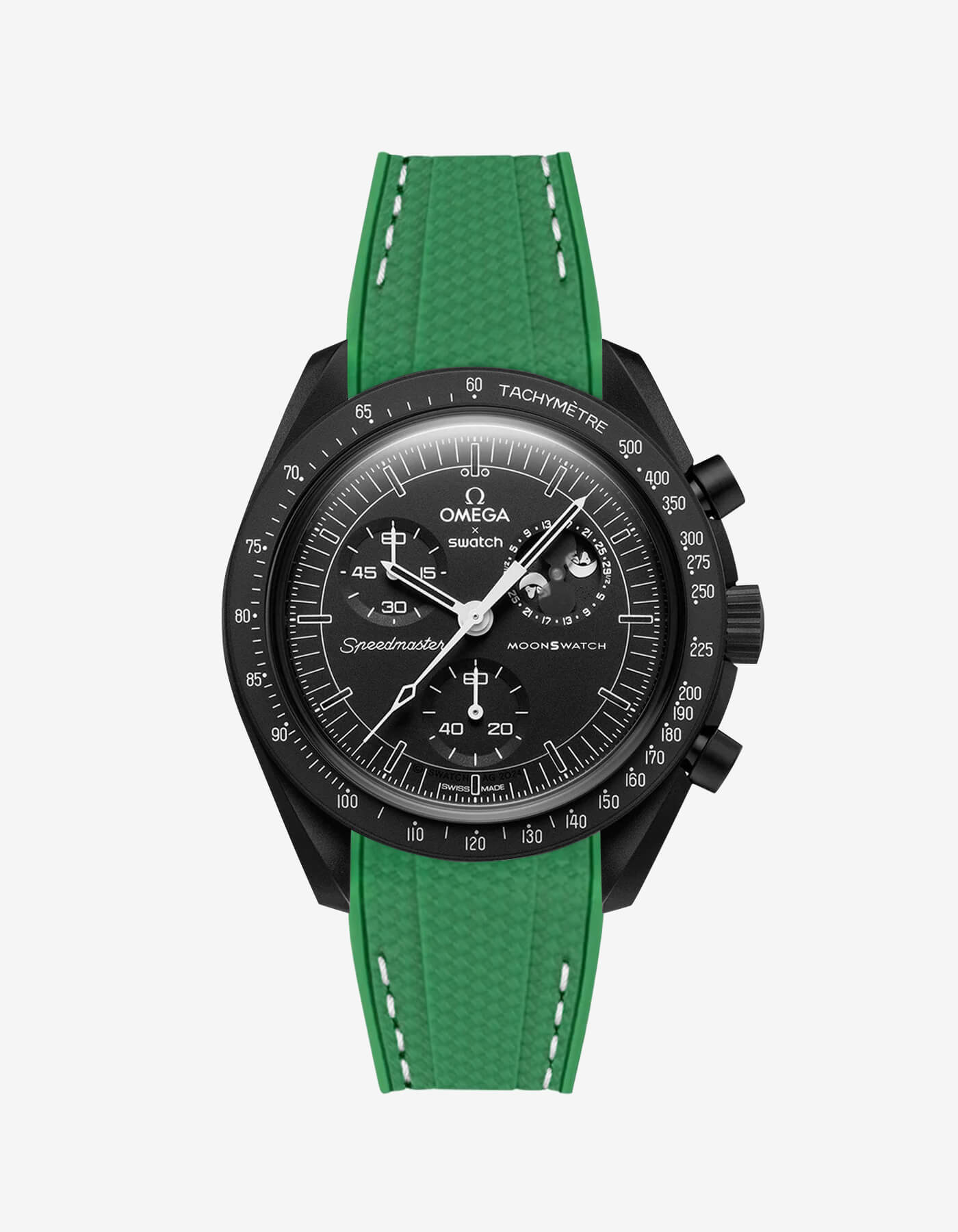 Premium liquid silicone rubber strap for the Omega X Swatch MoonSwatch. Durable and comfortable to wear, it accentuates the colors of the watch. Textured surface with contrasting stitching for a stylish look.